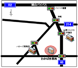 JR岡山駅から岡電バス(岡山ろうさい病院行き)に乗車。「若葉町」下車。徒歩5分。