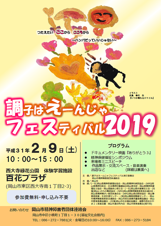 岡山市精神障害者団体連絡会 岡山市中区小橋町1丁目1-30(福祉文化会館内)