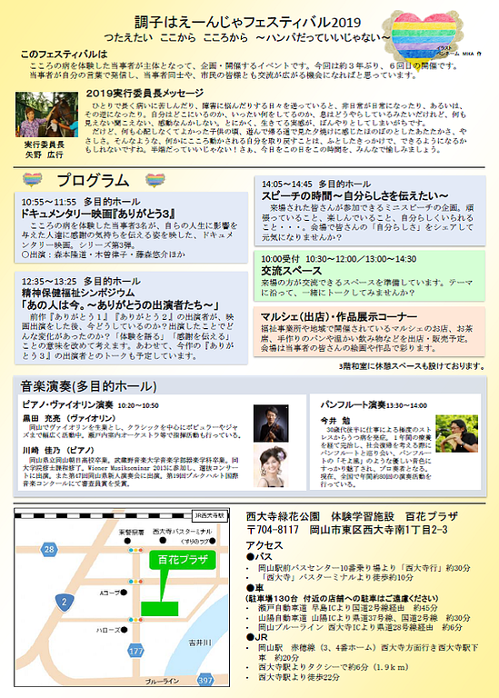 このフェスティバルは こころの病を体験した当事者が主体となって、企画・開催するイベントです。今回は約3年ぶり、6回目の開催です。