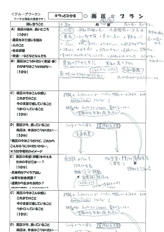 ②グループワーク:南区の連携~南区きらっとプランの作成~(5ピクチャーズを使っての南区の地域診断)