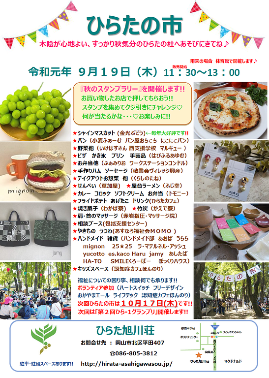 子どもからお年寄りまで いろんな人が集まる市が、ひらた旭川荘(毎月第3木曜日のお昼)で開催されています。