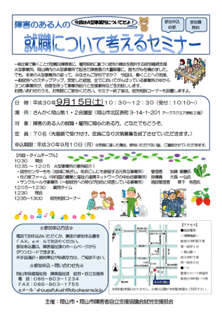 障害のある人の就職について考えるセミナーを開催します!(平成30年9月15日)