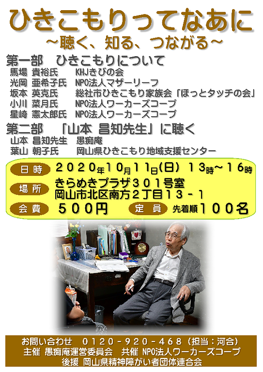 2020年9月23日地域情報「ひきこもりってなあに~聴く、知る、つながる~」研修のご案内【10月11日】 「ひきこもりってなあに~聴く、知る、つながる~」研修のご案内【10月11日】.png 504KB