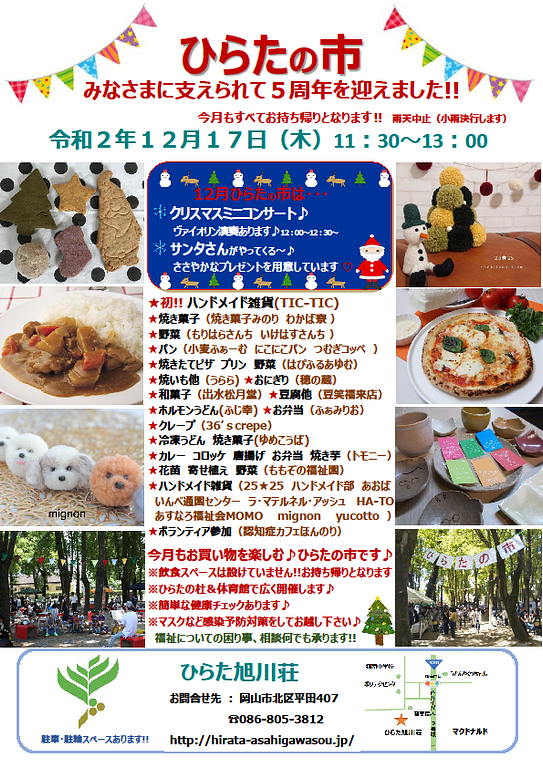 子どもからお年寄りまで いろんな人が集まる市が、ひらた旭川荘(毎月第3木曜日のお昼)で開催されています。