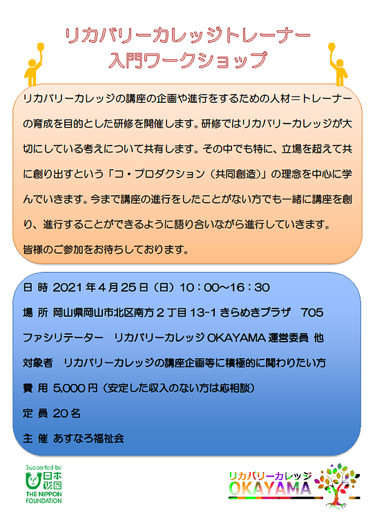 「リカバリーカレッジトレーナー 入門ワークショップ」のご紹介