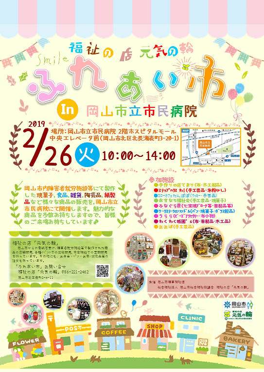(ご来場ありがとうございました♪)福祉の店「元気の輪」による、ふれあい市が岡山市立市民病院で開催されます!(2月26日(火))
