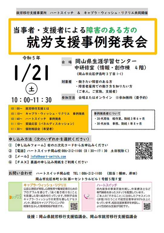 2022年12月11日イベント(一般向け)当事者・支援者による障害のある方の就労支援事例発表会のご案内 20221212-075950.png 365KB 20221212-080040.png 329KB