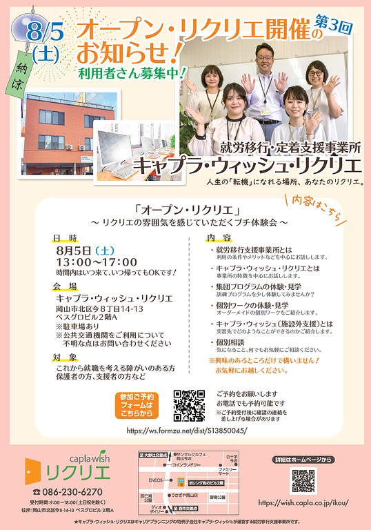就労移行・定着支援事業所 キャプラ・ウィッシュ・リクリエ主催