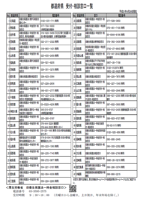 旧優生保護法に基づく優生手術等を受けた者に対する一時金の支給等に関する法律については、議員立法により平成31年4月24日に国会で成立し、公布・施行されました。