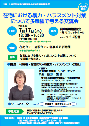 「在宅における暴力・ハラスメント対策について多職種で考える交流会」の開催について