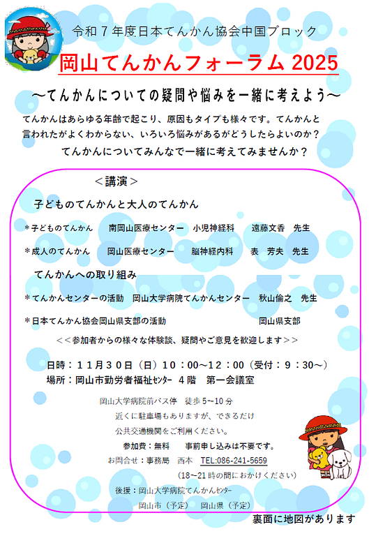 2025年10月9日イベント(一般向け)2025 てんかん市民公開講座【主催:日本てんかん協会岡山県支部】日本てんかん協会岡山県支部さんよりお知らせをいただきました。 ご関心ある方はぜひご参加ください。 2025 てんかん市民公開講座【主催:日本てんかん協会岡山県支部】.png 336KB 2025 てんかん市民公開講座【主催:日本てんかん協会岡山県支部】.png 75.4KB